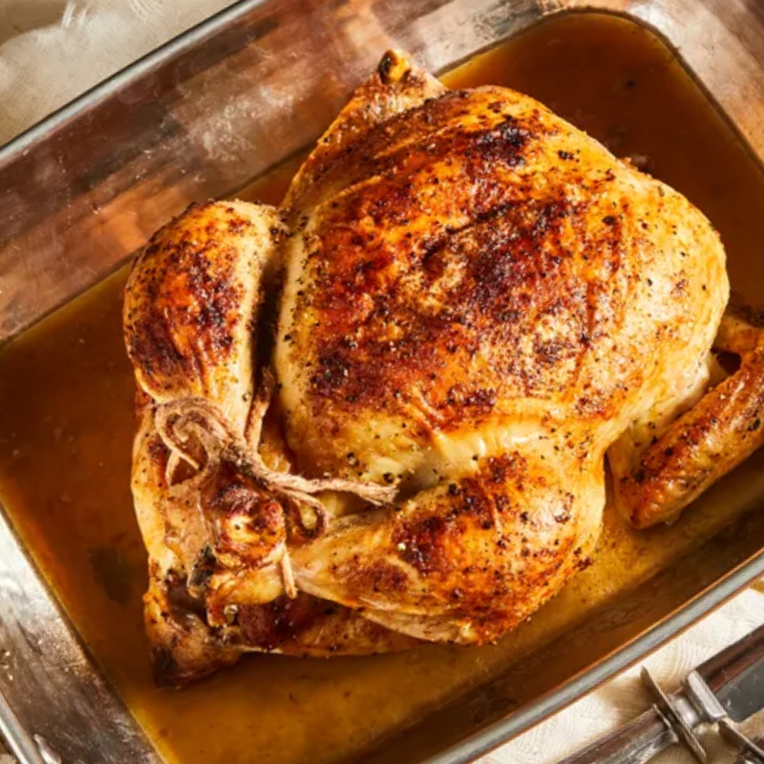 A perfectly juicy and golden brown roasted chicken for a comforting Sunday dinner.